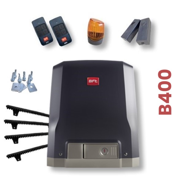 Instalati kitul BFT Deimos BT B400 pentru o experienta de utilizare fara griji. Conceput pentru porti culisante cu greutatea maxima de 400 kg, acest pachet ofera robustete si o viteza superioara de 16 m/minut. Este solutia perfecta pentru casele unde siguranta si fiabilitatea sunt pe primul loc.